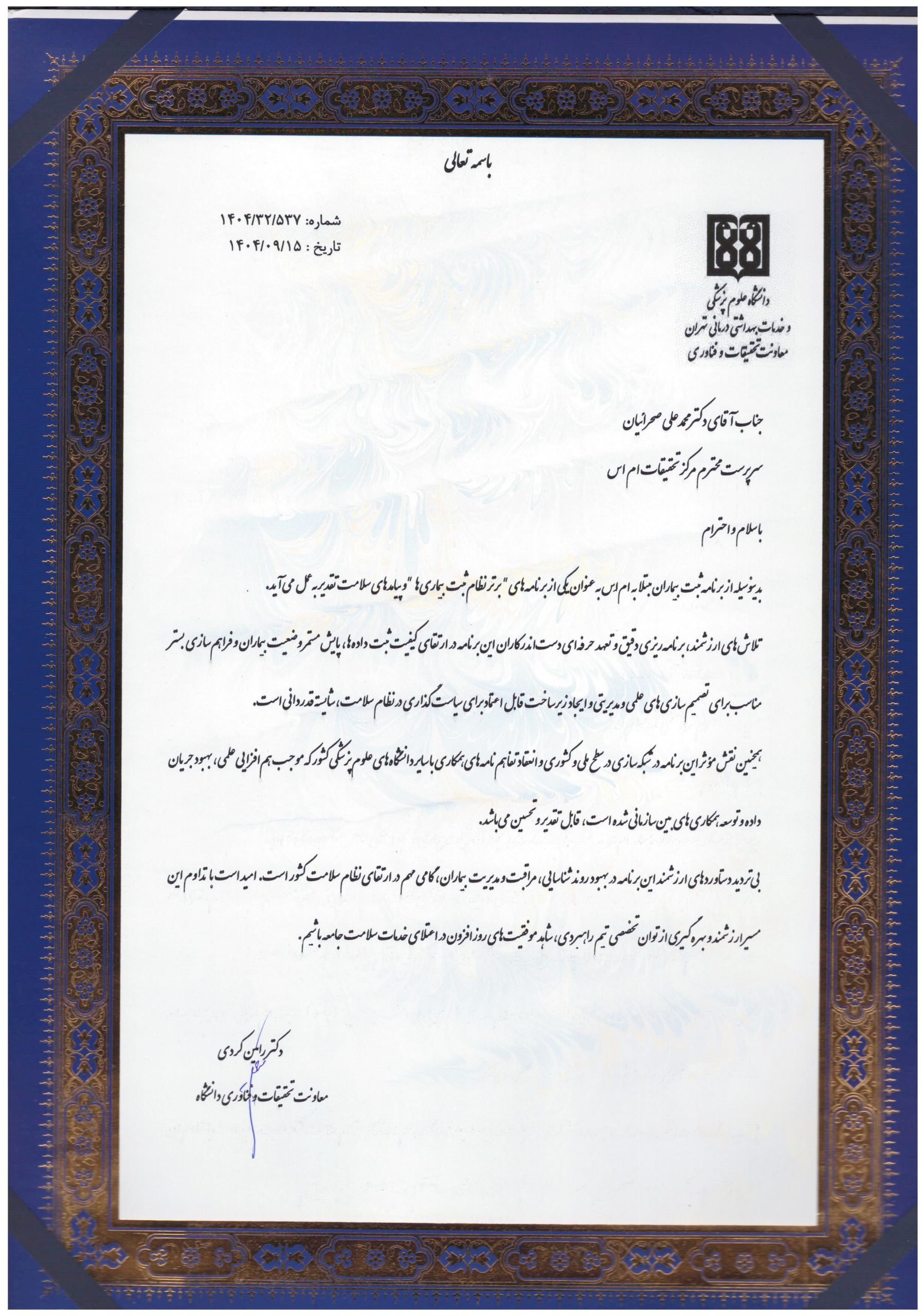 در این بین وجود ساختاری هدفمند جهت ثبت، پایش و پیگیری این بیماری بسیار ضروری میباشد. علاوه بر این امکان دستیابی به حجم عظیمی از اطلاعات امکان بررسی مدیریتی و انجام مطالعات تحقیقاتی را فراهم میکند. این امکانات منجر به صرفهجویی در هزینههای کلان درمان بیماران و استخراج آمار اپیدمیولوژیک مربوط به شیوع، سیر و شناخت فاکتورهای خطر و ارتقای خدمات بهداشتی درمانی به بیماران میگردد.